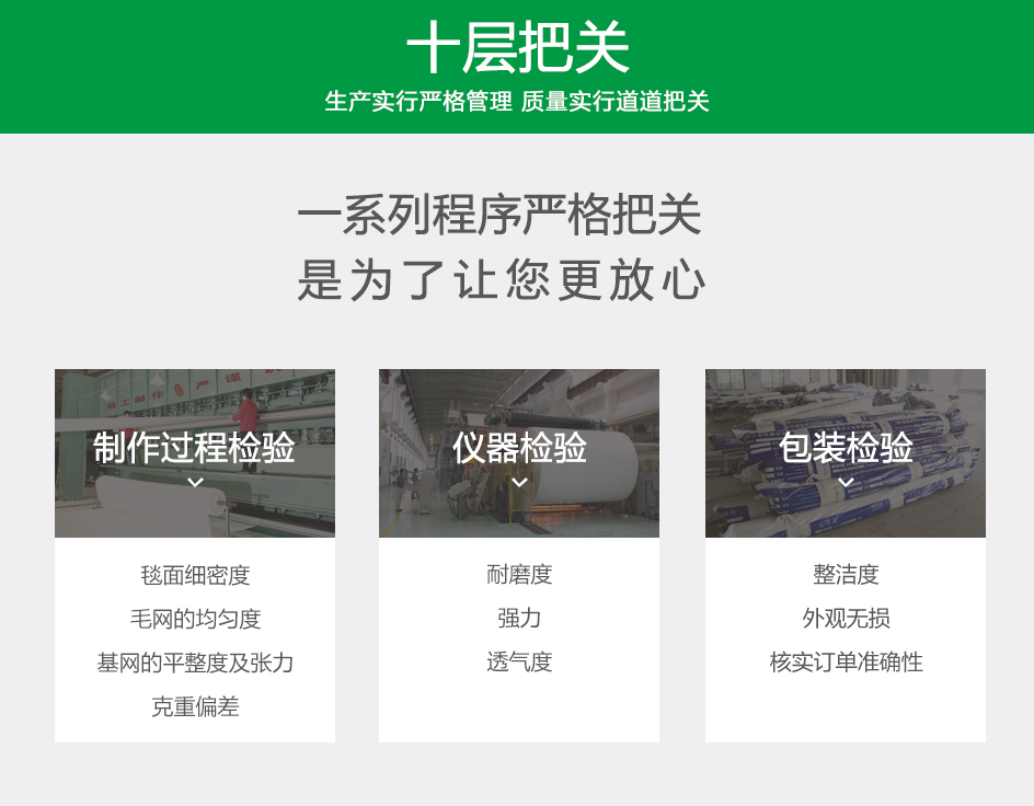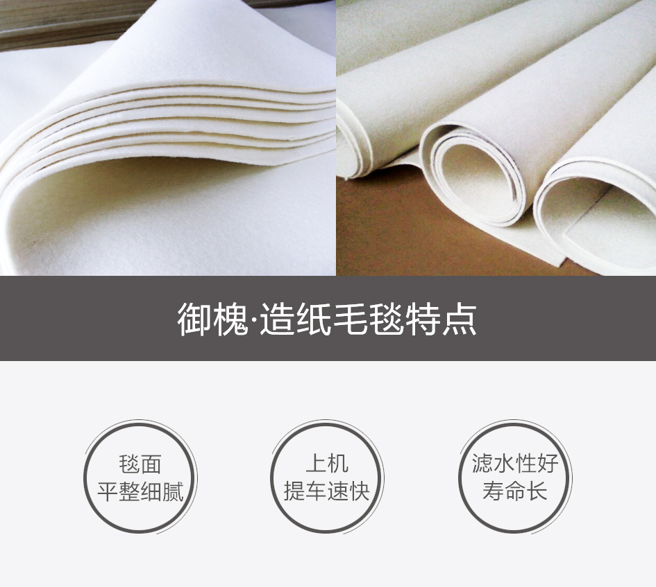 | 特點: | 毯面平整,強力大、抗壓性能強,空隙容積大、脫水性好,抗污、耐磨性能高,尺寸規格穩定、使用壽命長。 |